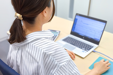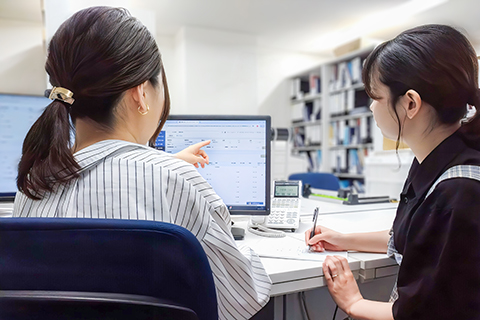 入社してまず驚いたのは、マニュアルが充実していることでした。未経験でわからないことも多かったのですが、詳細なマニュアルを参考にしながら、不明な点は先輩方に教えていただき、ひとつひとつ着実に身につけることができました。現在も、日々の業務の中で疑問が生じることはありますが、周りの方は快く質問に答えてくださり、良好な関係性を築けていると感じています。動画研修をはじめとする学習サポート体制も整っていますし、様々なテーマで社内研修も実施されているので、実務未経験で入社しても安心して働ける環境だと思います。私自身も新入社員の教育担当になった際には、どんなことでも気軽に質問できるよう、話しかけやすい雰囲気作りを心がけています。