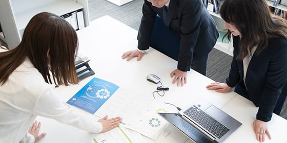 オンライン面談の活用で移動コストを減らし、より多くのお客様に丁寧に寄り添える時間を創出。社内でも他拠点との連携や情報共有をスムーズに行えるので、より効率的に業務に取り組めます。